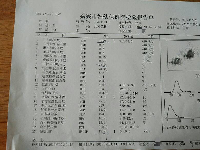 血象提示有炎症存在,建议口服头孢地尼共3天