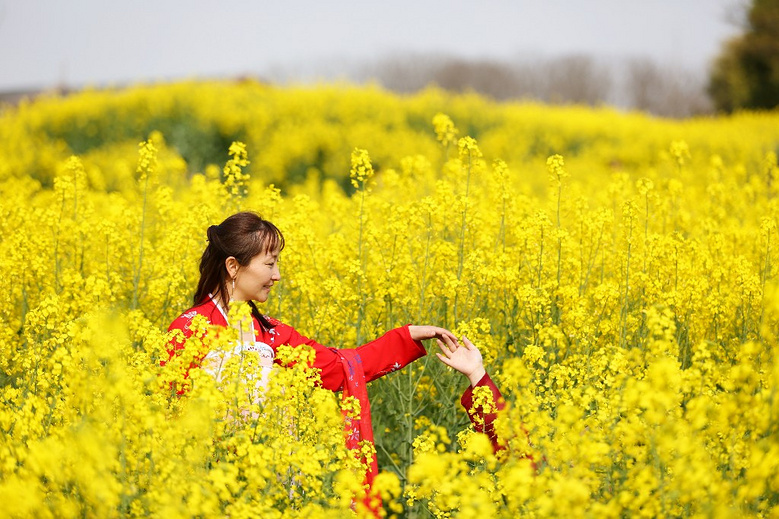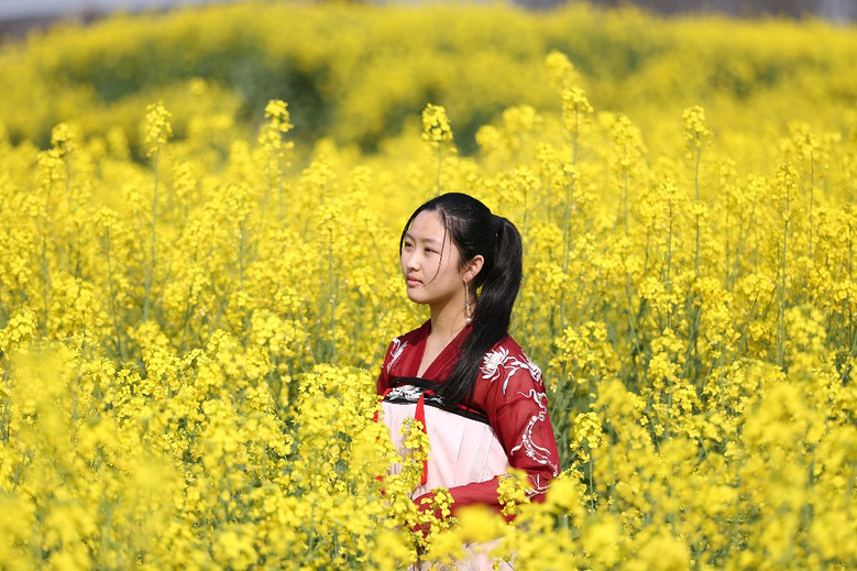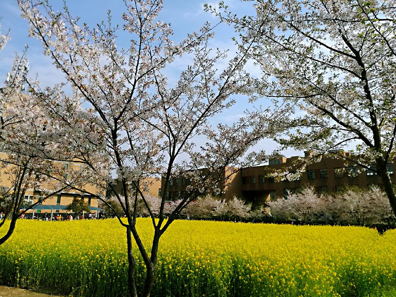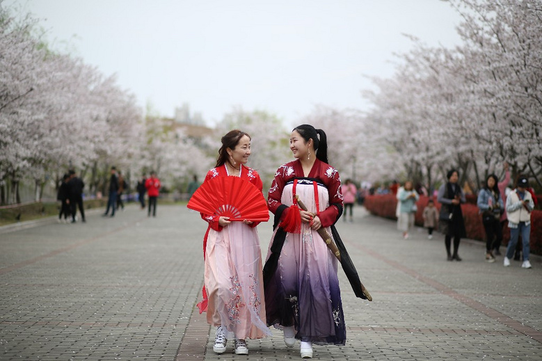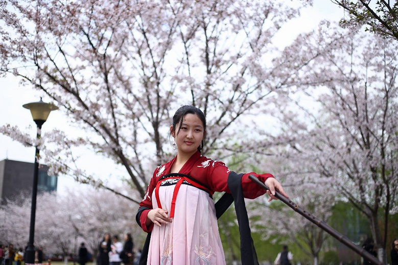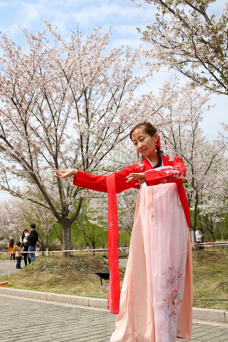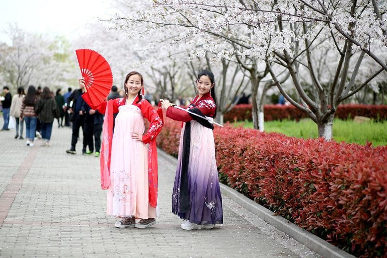晒晒樱花,油菜花的汉服照吧,题名为我和女儿春暖花开人穿越,可好?