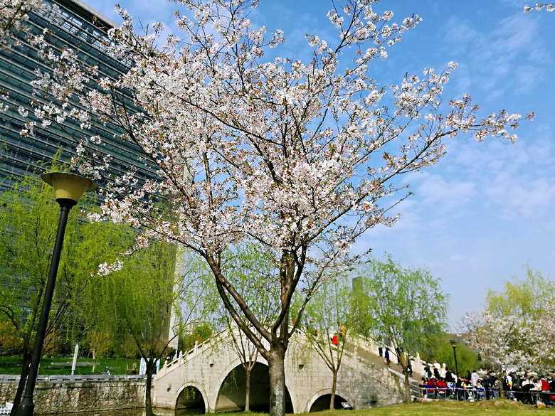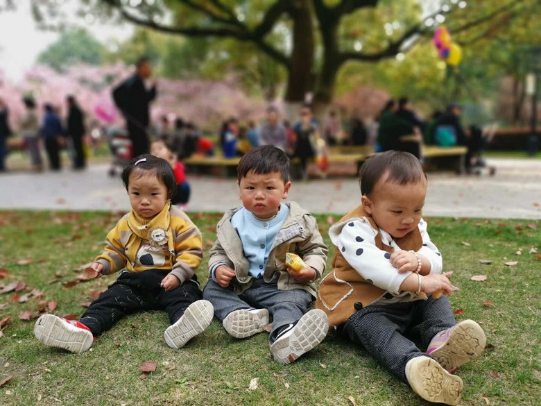 城南花园,樱花盛开,当然少不了宝宝们的约会