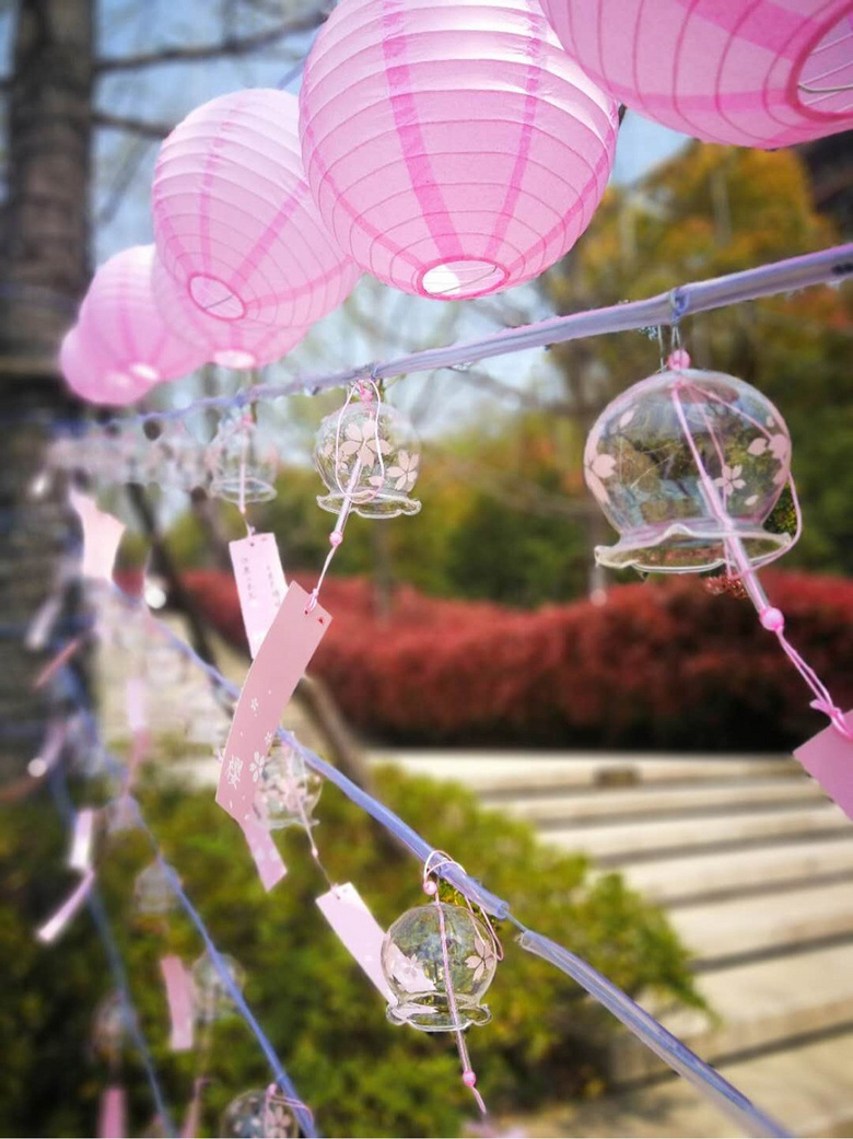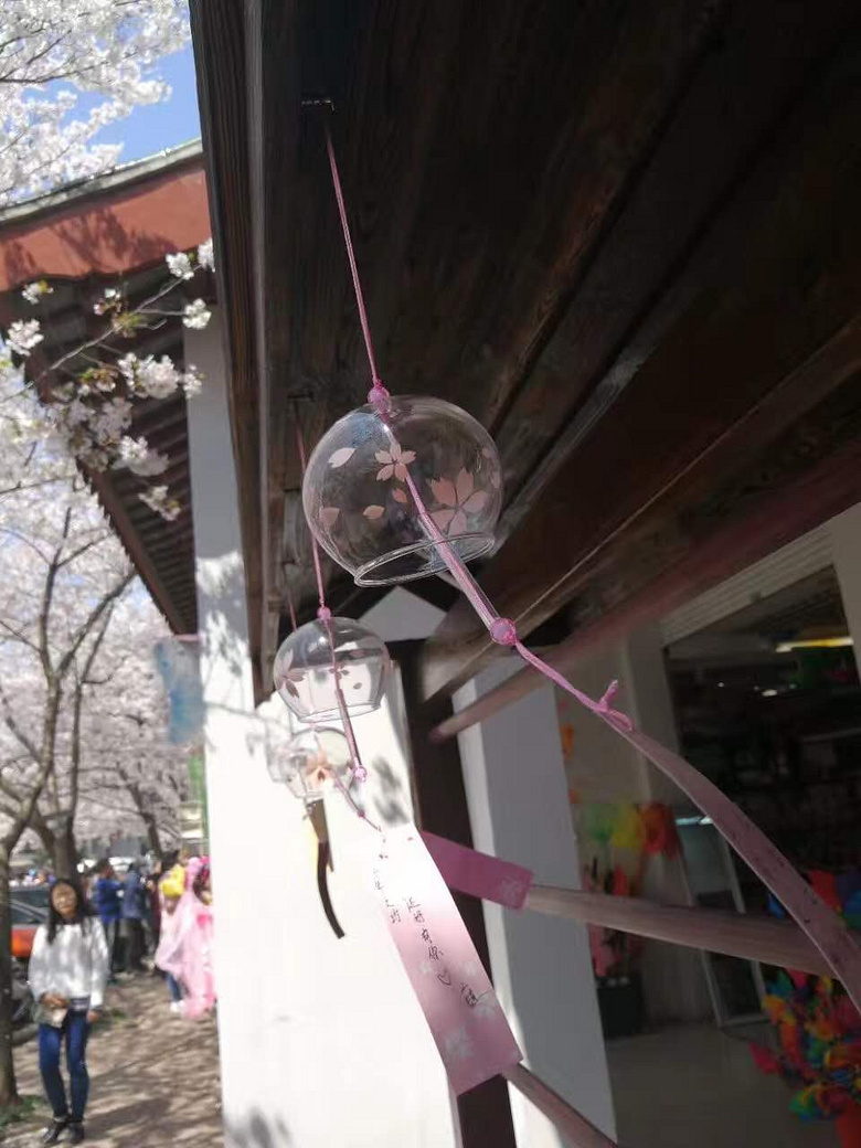 风一吹樱花风铃发出叮当叮当清脆的声响,希望这些挂在树上的美好祝福,都会随风飘到每一个被祝福的人的心里。