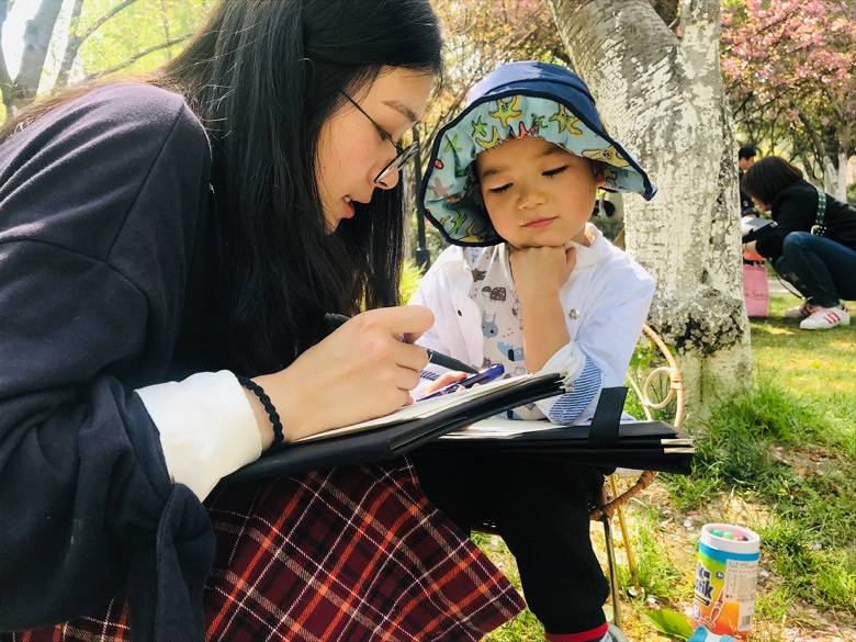 标题《写生》孩子是春天的代名词!拍摄地:范蠡湖公园.