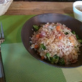 蔬炒饭。本想说,应该肉不会很多的,正好也吃点素的,最近大鱼大肉的,没想到,可爱的服务员端上来,一看,好多肉的,看着很可口的样子,全部被我消灭了!哈哈~店里的东西,对于我们学生朋友来说,还是有点小贵的。不过,存在即道理。说贵,是因为我们还没有能力。要好好加油~奔着小资...