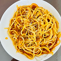 意面,面条的一种,就像意大利通心粉相似,主要的调味料是番茄,不喜欢番茄的就不太喜欢。
