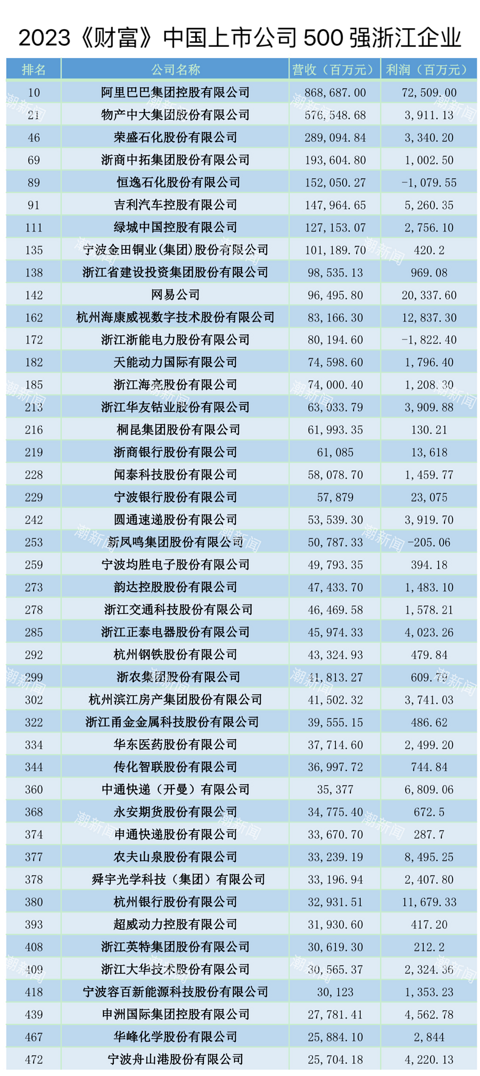 7月11日晚,《财富》杂志公布了2023年《财富》中国上市公司500强排行榜。 据统计,今年500家上榜的中国上市公司,总营业收入达到65.8万亿元人民币,净利润为4.7万亿元。上榜公司的年营收门槛接近237亿元。 此次共有44家浙江企业上榜,其中嘉兴有4家企业入选,分别为浙江华友钴业股份有限公司、桐昆集团股份有限公司、闻泰科技股份有限公司和新凤鸣集团股份有限公司。 via.读嘉