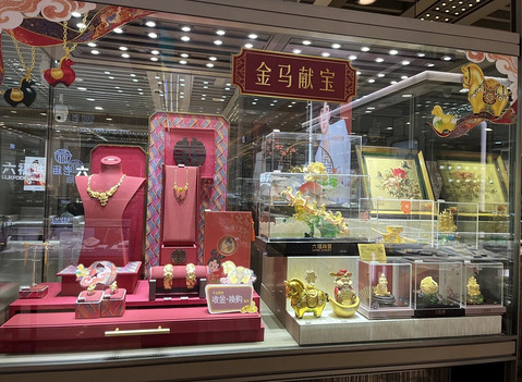 国际黄金期货价格和现货价格29日再创新高,盘中突破每盎司5500美元。 记者走访嘉兴多家金店发现,商家纷纷推出马年黄金挂饰系列,各类造型精致、寓意吉祥的吊坠、生肖手链等产品持续热销。 昨日上午,记者来到市区禾兴路上一家商场,看到黄金店内,马年生肖黄金饰品被摆放在最显眼的位置,吸引不少消费者驻足挑选。 “朋友马上要生小孩了,生肖就是马,给她挑选一件礼物。”顾客张女士买了一条小马挂件手链,打算送给即将