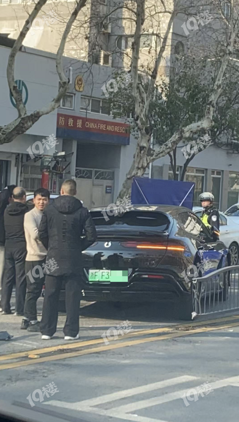 今天中山路早高峰,腾势电车撞护栏!车头撞得一塌糊涂…