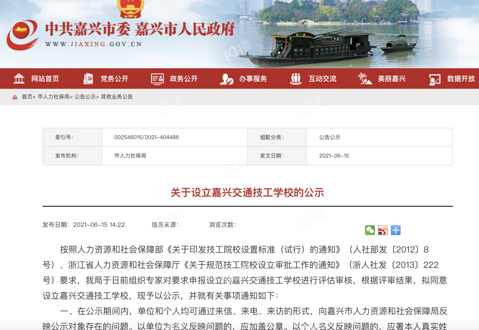 嘉兴要新建一所嘉兴交通技工学校?具体位置在哪呢?