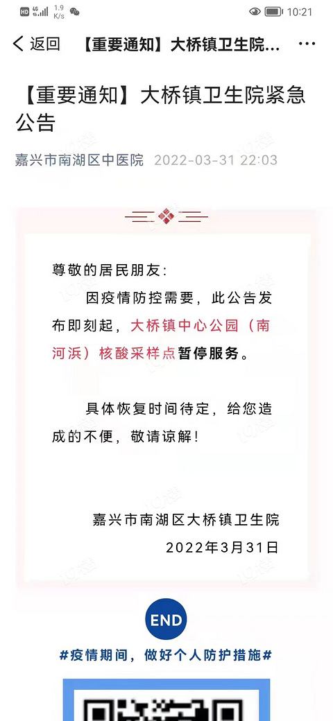 大桥中心公园停止核酸检测