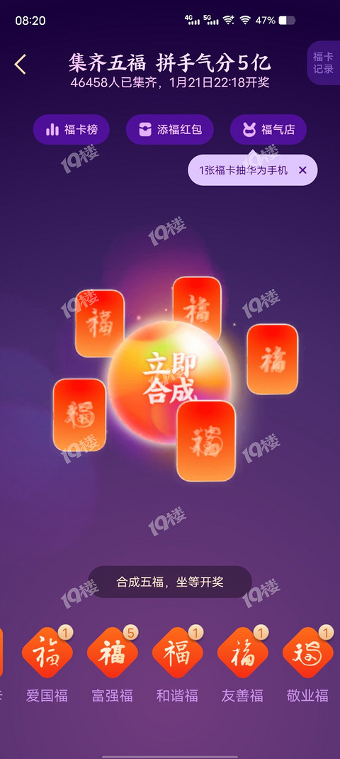 早上收能量突然爆一张敬业,原来开始集福了,齐了齐了。