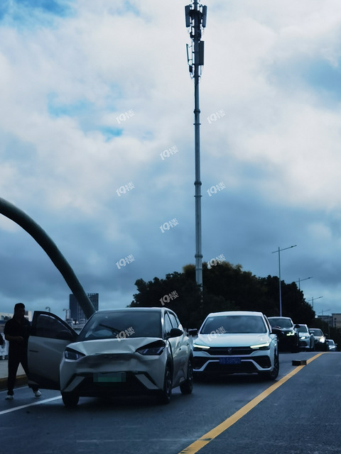 岗山路桥上追尾!电车都冒烟了!堵车ing…