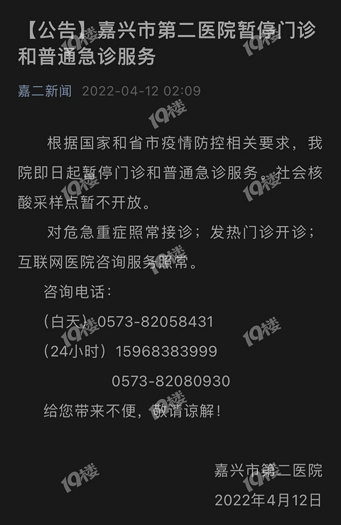嘉兴二院4.12停诊,啥情况?好突然!