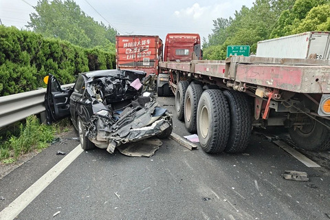 高温天容易犯困!嘉兴高速上,半挂车追尾多车!小车直接被…