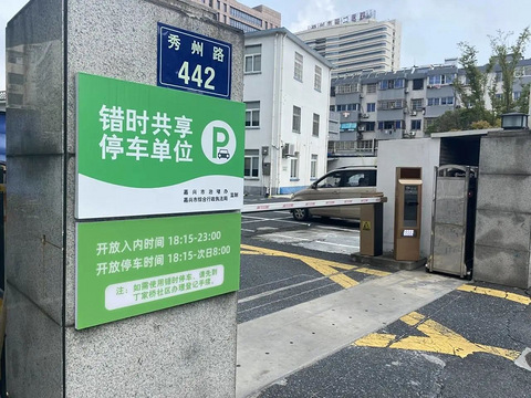 为持续推进停车资源错时共享,缓解区域停车供需矛盾,今年,嘉兴将公共停车场建设项目列入市政府民生实事项目,其中明确全市将提供5000个错时共享车位。这项工作进展如何?错时共享车位是否真的共享?记者进行了调查。 23日上午,记者来到位于南湖区秀州路上的嘉兴市房屋征收服务中心秀州路办公点,看到大门口张贴有“错时共享停车单位”的绿色牌子,下方另一块牌子上写着“开放入内时间 18:15—23:00,开放停车