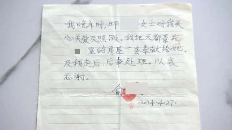乍浦的邱阿姨给我们打来电话,她说她照顾隔壁一个老师傅,这个老师傅说要送她一套房子,现在老师傅过世了,真的留下一张遗嘱,说送了邱阿姨一套房子,但是,老师傅的两个女儿不同意,邱女士要问问,老师傅送房子到底算不算数? 邱阿姨今年58岁,住在平湖乍浦镇,2022年5月,她认识了邻居老俞。老俞是上海人,当年81岁,有两个女儿,都在国外生活,老俞一个人从上海搬到乍浦养老,认识以后,老俞想请邱阿姨照顾他,邱阿