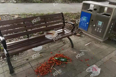 这一不文明行为让范蠡湖公园很受伤 今天早上5点左右,我在途经嘉兴市区的三塔路附近时,看到范蠡湖公园内有人曾坐在长椅上吃“夜宵”落下的一大片小龙虾残渣、塑料包装袋盒、啤酒瓶、一次性筷子等垃圾,与周围的环境格格不入。值得一提的是,就在距离长椅不到1米的边上便有一个垃圾桶。从现场图片中不难看出,这就是昨晚夜宵人自己落下的“吃相”和素质! 小龙虾味很美,搭配啤酒味更美,如果你把这些美味带回家,或叫上