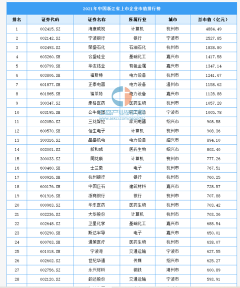 建党百年共富裕,蝶变跃升中,2021年完美收官。 随之,2021年中国上市企业500强名单(以下简称500强名单)也新鲜出炉。嘉兴市共有7家企业入围500强名单,数量位列全国第七、全省第三,充分体现了嘉兴市的经济活力和企业发展水平。 一直以来,江浙两省都是我国经济最活跃的省份,尤其在上市企业上都表现出色。此次,伴随2021年最后一次收盘,江浙两省70多家市值500亿元以上的企业座次排定,其中,嘉兴