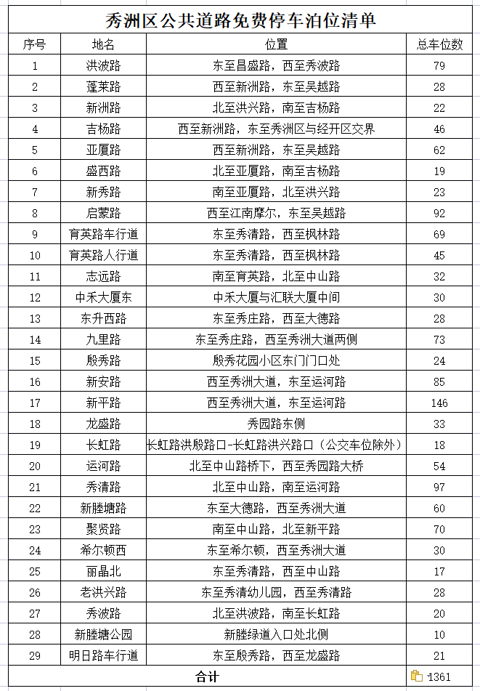 注意啦!秀洲区这些公共停车泊位免费开放