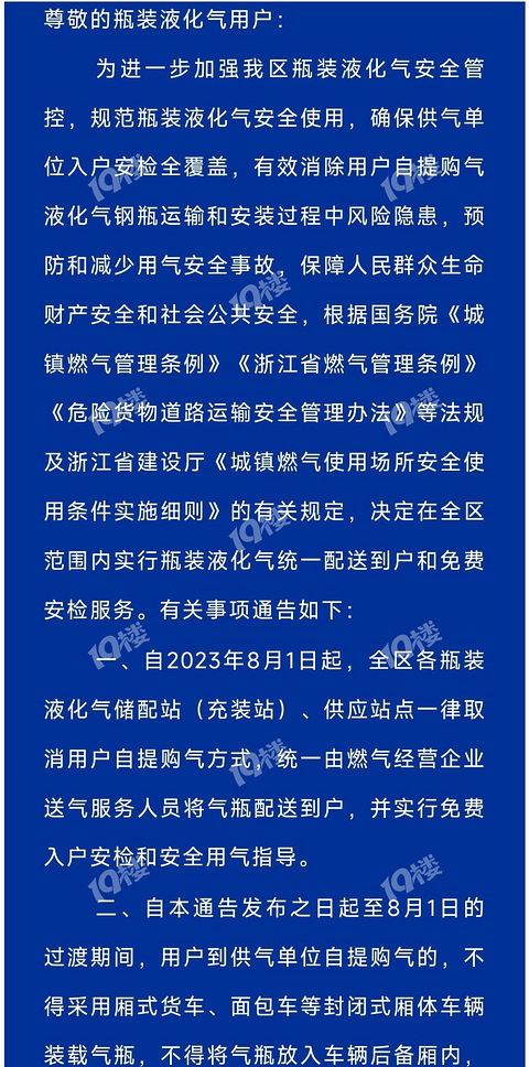 南湖区关于取消瓶装燃气自提购气的通告