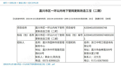 嘉兴市区一环内地下管网改造第2期开始招标!总投资4509万元