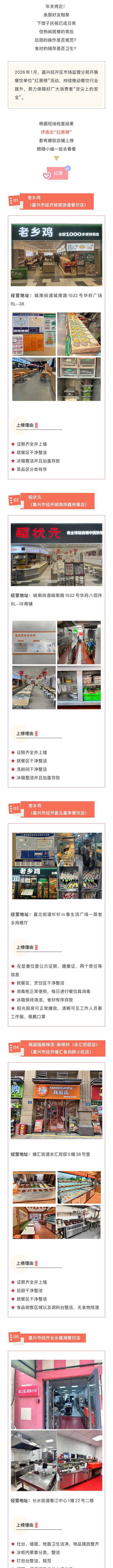2026年1月,嘉兴经开区市场监管分局开展餐饮单位“红黑榜”活动,持续推动餐饮行业提升,努力保障好广大消费者“舌尖上的安全”!