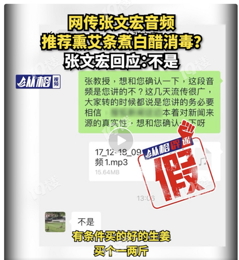 一段音频流传,推荐熏艾条煮白醋消毒?张文宏:不是我说的!