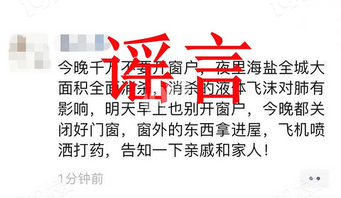 今晚,记者发现,有些市民在朋友圈里发“海盐县城全面消杀”的信息。经确认,这是谣言! 记者查询得知,类似谣言曾在多地出现并被辟谣!请大家不信谣不传谣不造谣,不必恐慌,认真做好个人卫生,减少紧张焦虑。 相关防疫信息请及时关注“海盐发布”微信公众号 来源:爱海盐客户端