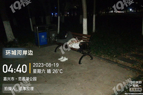环城河边躺了个人把晨练阿姨给吓蒙了! 今天凌晨4点半左右,一位每天都要来环城河边压腿晨练的阿姨按照惯例来到了老地方,当她正要将包包放在河边的长椅上时,忽然发现长椅上竟然躺了个人正酣然大睡,由于凌晨的环城河东岸很阴暗,这着实把这位晨练的阿姨吓了一大跳!她说“好端端的一个人为啥不呆在家里而要在野外露宿呢?我就怕这些流浪者的身份有问题,希望有关部门对此能引起高度重视。”