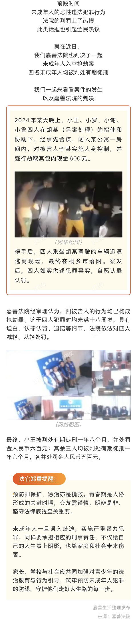 夜晚,嘉兴一公寓住户家里出事了!4名未成年人被判有期徒刑!