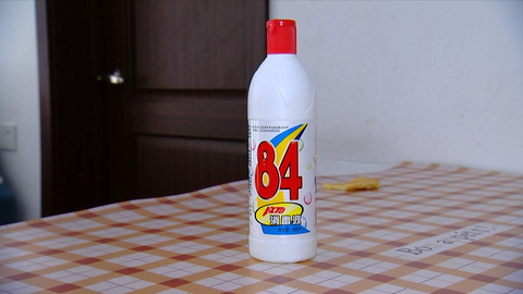 春节期间很多人家都会大扫除,打扫卫生就要用到清洁剂,现在市面上各种清洁剂很多,大家使用的时候一定要当心,不要混用,否则可能产生毒气。 董女士住在南湖区余新镇,新年到了,她在家里大扫除。 董女士:我发现油烟机很脏,我就用清洁剂擦了一下,之后抹布怎么洗都洗不干净。 董女士突然想到,家里还剩下不少用来漂白衣服的84消毒液,衣服都可以漂白,抹布是不是也可以呢? 董女士:我想84消毒液去污能力挺强的,以前