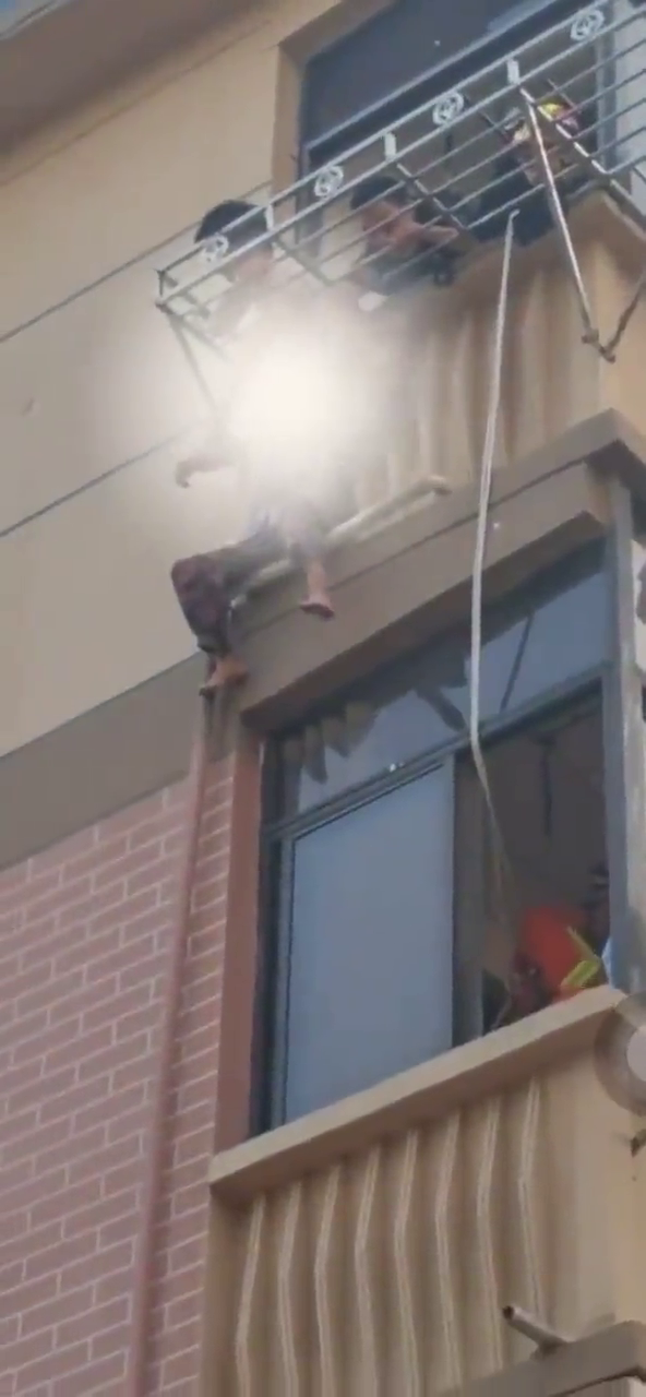 惊险!平湖一老太太赤脚坐在4楼外墙塑料管上?!万幸的是……