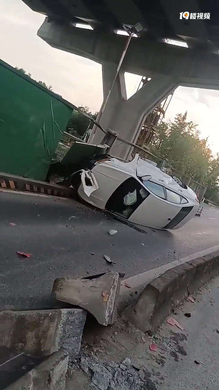 这条射线高架还没造好,就已经有人翻车撞上围挡了…