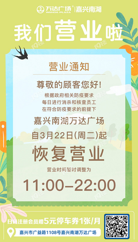 南湖万达自3月22日起恢复营业啦!!!!