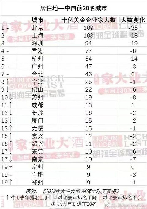 最近,胡润研究院发布《2023胡润全球富豪榜》。 榜单显示,过去一年全球平均每周减少5位十亿美金企业家,其中3位在中国。全球十亿美金企业家人数比去年减少269位,是历年来减少最多的一次,达到3112位。中国虽然减少了164位,仍以969位十亿美金企业家领跑全球。 445人落榜,是历年来落榜人数最多的一次,中国最多,229人(占51%),其次是美国44人,印度40人。 176位新面孔,中国最多,69