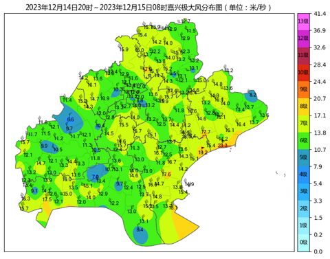 昨天气温异常偏高,白天最高升至25.3℃,超过了我市12月气温的历史最高极值。 今天早晨强寒潮开始影响我市,气温一路下滑,今天8时已降至7.9℃,风力也明显增大,至08时全市普遍出现6-8级西北风,个别沿海地区还达到了9级。 今天白天雨水时而出没,小雨为主,局部中雨,而随着气温不断下降,下半夜到明天早晨有小雨夹雪。 降温报告 强寒潮已于今晨开始影响我市,气温将持续下降,预计今天(15日)至