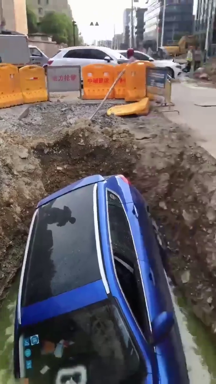网友爆料:昨日下午,桐乡秋实路一汽车开进坑里了! 什么坑这么“坑”?一起来看看! 一整个车子都栽进去了! 可怜的雨刮器拍打着水面! 幸好车主并无大碍! 但不得不说啊,这坑大小真是刚刚好! 完全就像是“量身定制”! 从现场其他视频来看,应该是修路挖的坑! 不过吧!明明这坑旁边的路这么宽! 非常足以一辆车通过!怎么会掉进去啊? 有“机智”的网友们猜测: 估计是油门当刹车了! 具体事故起因不明,一切以官