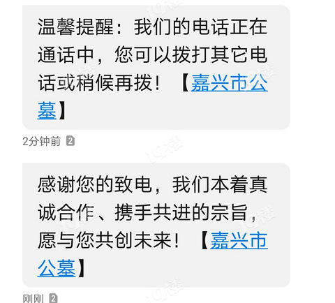 尴尬!嘉兴市公墓回我短信 要和我携手共创未来…