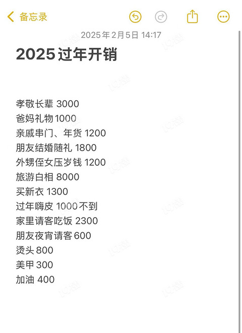 没事千万别盘点过年开销啊!放假8天不知不觉花了2万多!