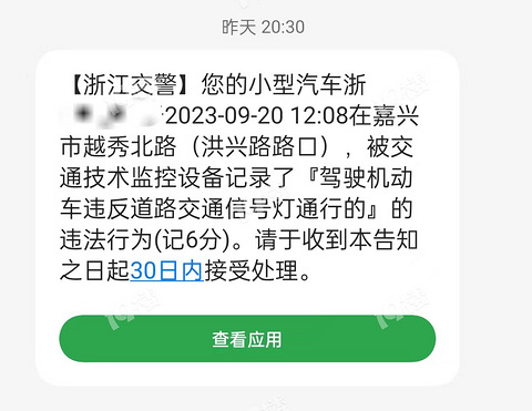 昨天晚上突然收到短信,说我20号闯红灯。 懵了,我闯红灯了么?自己怎么不知道? 打开交管12123查看—— 天!我竟然真的闯红灯了!而且还是在读秒,还有四五秒就变绿灯了呀!我竟然一个转弯过去了!!! 我一直在回想,当时在干啥,怎么会分神? 本来停得好好的等红灯,为什么突然闯红灯了?! 我是趁中午抽空去探望一下干妈的(中秋节是必走亲的),先前是停着等红灯 ,应该是看到边上的电瓶车都开了,我下意识的跟