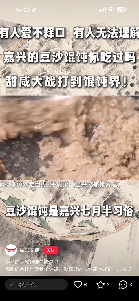 最近刷短视频刷小红书都刷到了嘉兴豆沙馄饨,这是怎么突然火了?现在外面的人不会以为我们嘉兴人都吃豆沙馄饨吧。作为嘉兴市区的,豆沙馄饨不仅没吃过,听都没听过,被科普了是平湖七月半吃的。