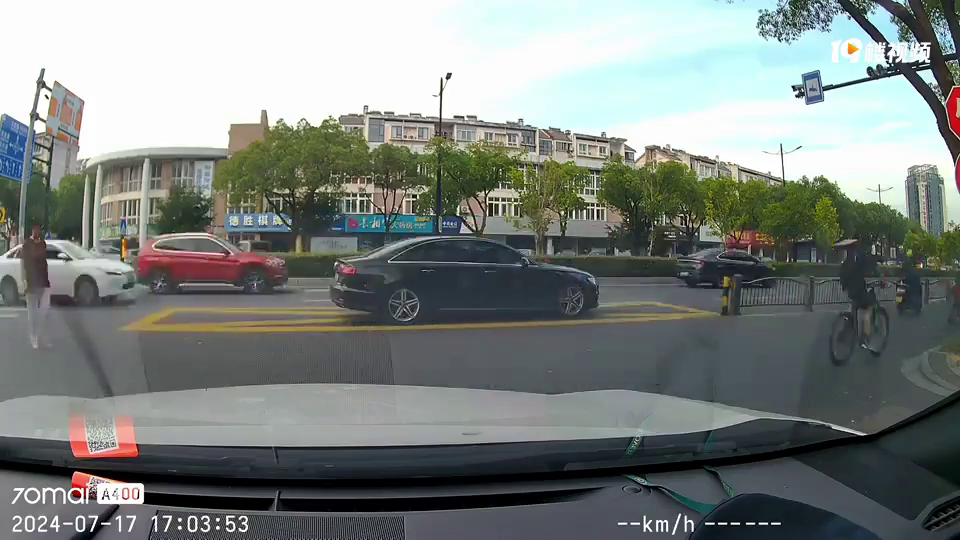 视频的发生地是在嘉兴市区某小区的出口处,正前方是禁止停车区域,再往前一点就是出租车上下客区,这辆奥迪车就停着不动,等了半分钟一直没动静,摁了喇叭催促,没有任何反应(副驾驶一位女士,右后座一位男孩)都知道他们的车把我堵住了,没有任何反应,有后座的小男孩一直拿着手机对着我在拍,不知道在拍什么。 他所停车的位置,刚好又是公交优先车道,挡住了公交车,又是下班高峰期,东升路车流量又大,造成了小拥堵