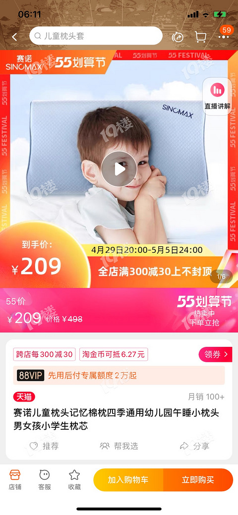 想买个儿童枕头 上周看 再用个红包括169可以拿下……客服说下周就去活动 5.5大促今儿想起来一看……顿时没好感 所以有的东西想买就买