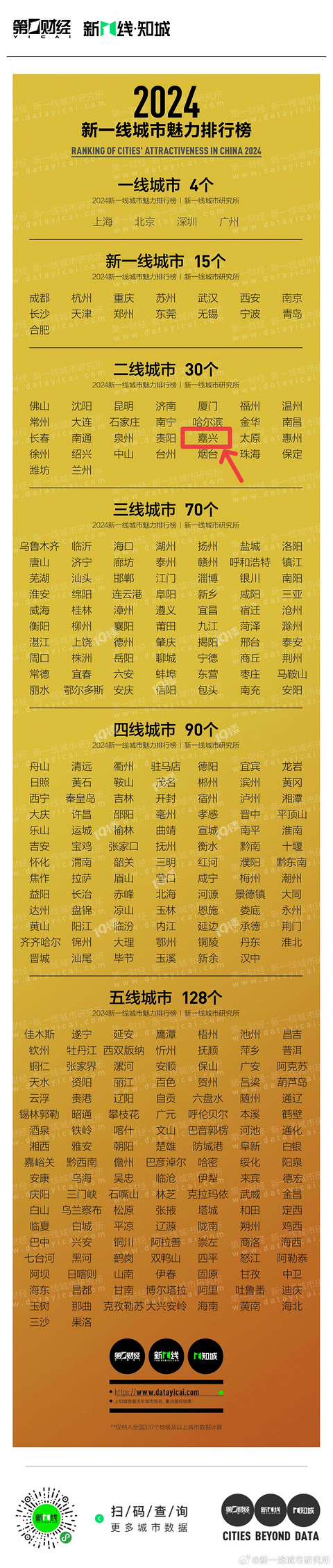 详见下图,数据来源自第一财经·新一线城市研究所发布