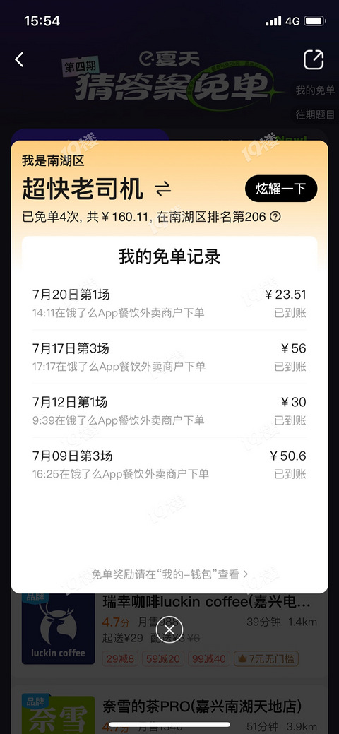 这个夏天饿了么靠免单活动火了一把,现在已经进行到4.0了。我也参与了几次,虽然是失败次数远多于成功次数,还是成功了4次,在南湖区排206名。大家免单成功几次了,在嘉兴排第几?