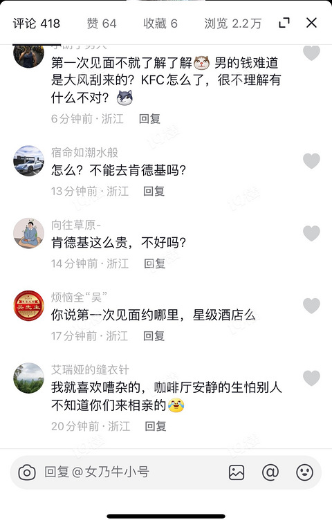 我的一位朋友跟我说,她跟男生第一次见面,男生要求约在肯德基,说喝咖啡太贵了,她觉得约在肯德基环境有点嘈杂,也不太正式,大家怎么看?