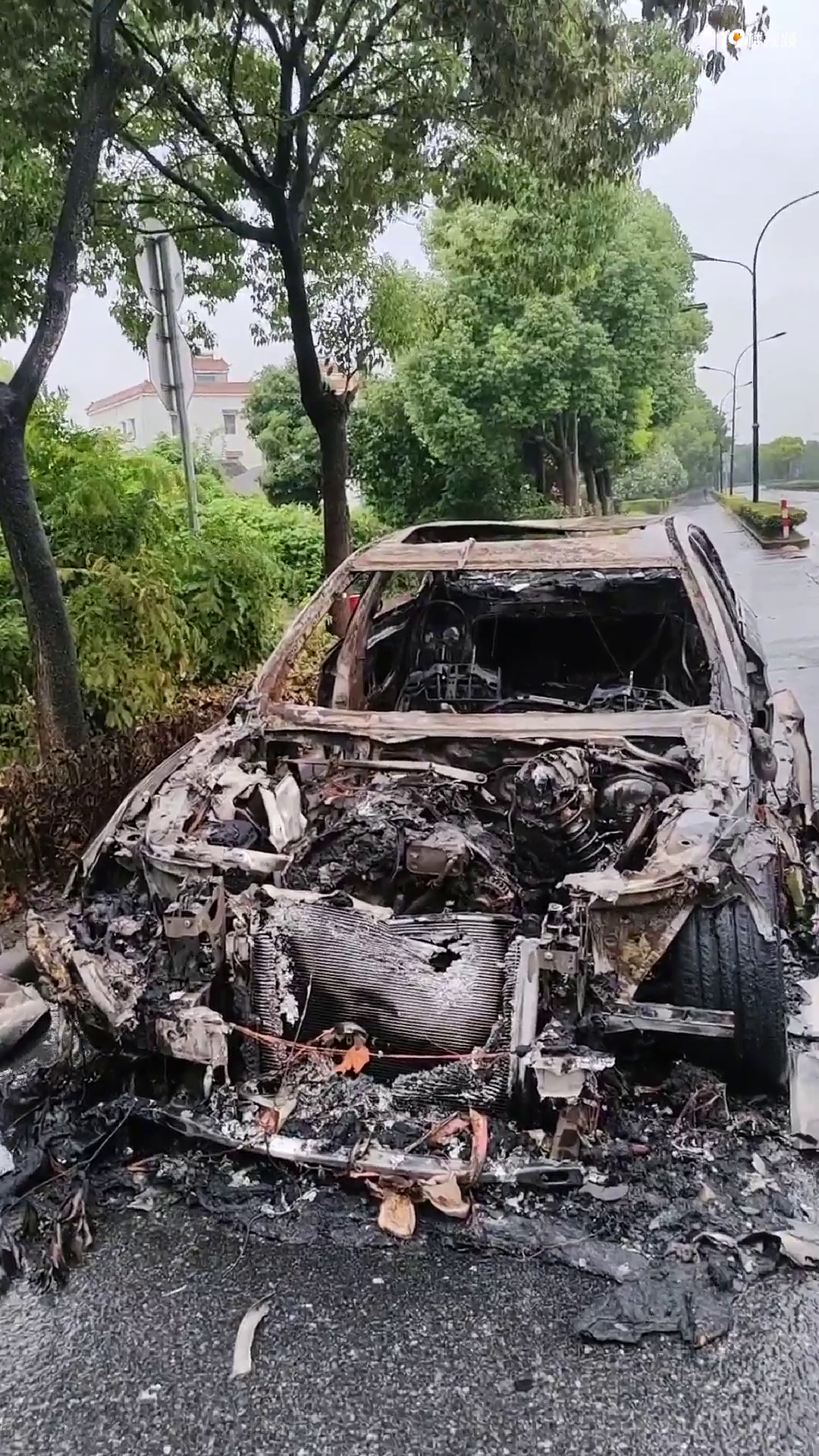 在dy上刷到的,桐乡崇福320国道附近,一辆宝马五系烧得面目全非!据说还没上牌! 说是前天晚上发生的事,下雨天咋还能烧成这样?