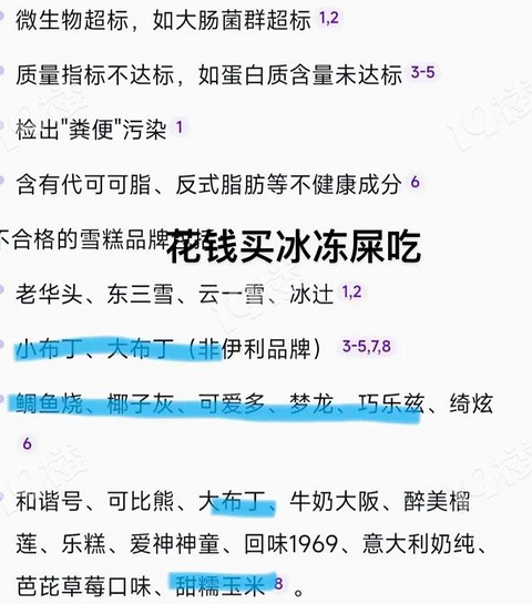 一觉醒来天都塌了,好几个品牌的雪糕都检测出含有粪便污染,大肠杆菌超标数十倍!以前觉得吃屎都赶不上热乎的,怎么现在吃屎都要花钱买了呀!注意看,后面标1,2的才是大肠杆菌超标!其他的是别的超标1.早上起来喝一杯没有黄豆,勾兑的豆浆。2.吃两个淋巴肉做的包子。3.中午吃一份僵尸肉做的外卖。4.下午饿了喝一杯科技与狠活的奶茶,顺便加餐吃两根狗都不吃的骨泥淀粉肠。5.热死了随便来一根大便冰棒6.晚上来点地沟