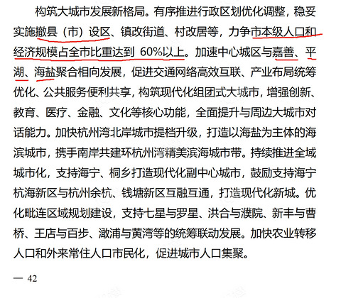 《嘉兴市国民经济和社会发展第十四个五年规划和二〇三五年远景目标纲要》第42页也就是到2035年以前嘉善、平湖、海盐撤县设区,嘉兴市本级占全市60%以上(常住人口335万),到时候真有机会造地铁了