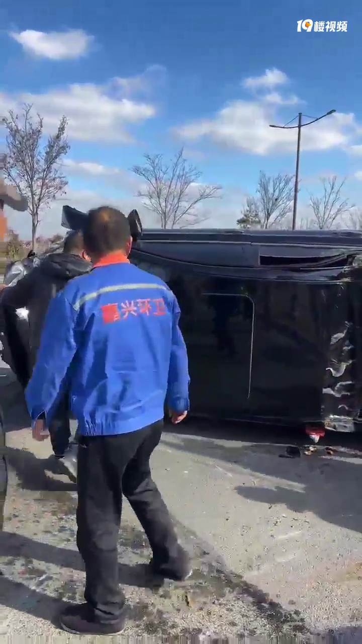 湘家荡,北辰路上,看到个小轿车侧翻了,气囊全开。司机和副驾被困,路过看到还有热心市民和环卫工在帮忙解救…