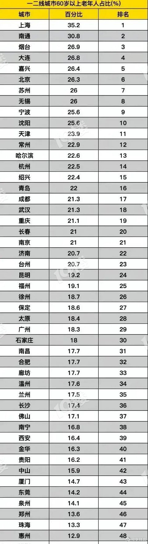 中国老龄化最严重的10个城市,嘉兴我排第五!
