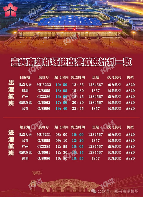 嘉兴南湖机场进出港航班计划表来了!所有航班信息全曝光!
